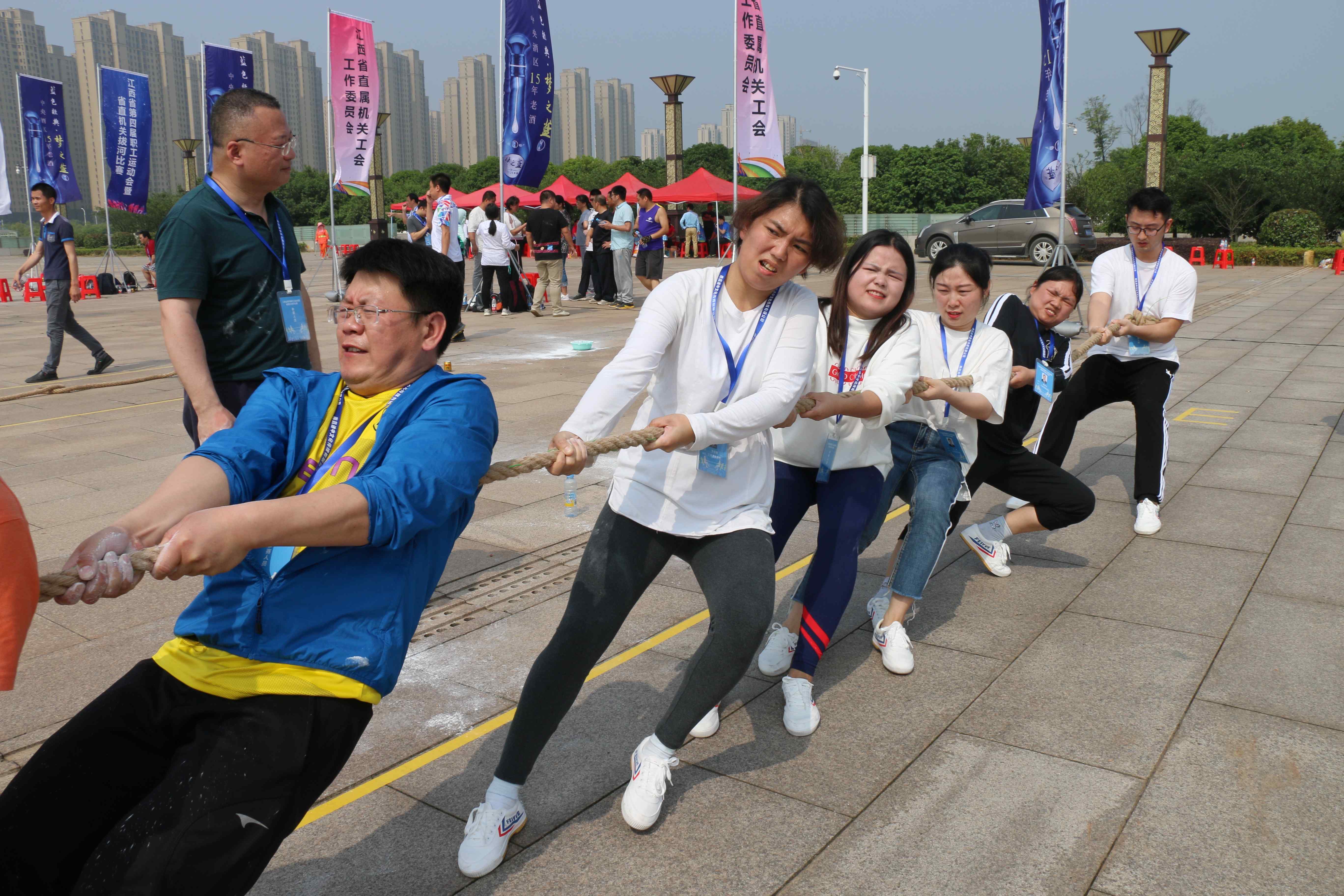 5月18日,省直机关拔河比赛在省行政中心广场拉开帷幕,省直35家单位参加比赛。机关工会精心组织20名干警代表中文成人网参加比赛,检委会专职委员冯祖强同志参加。