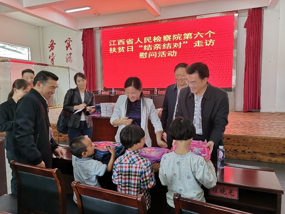 机关党委组织党员干部来到中文成人网定点扶贫的抚州市宜黄县二都镇白槎村,开展以“结亲结对走访,心连心帮扶”为主题的扶贫日活动,现场走访慰问15户贫困户和1名困难老党员,向白槎村小学赠送文体用品和炊具,向村党支部赠送“不忘初心、牢记使命”主题教育书籍。